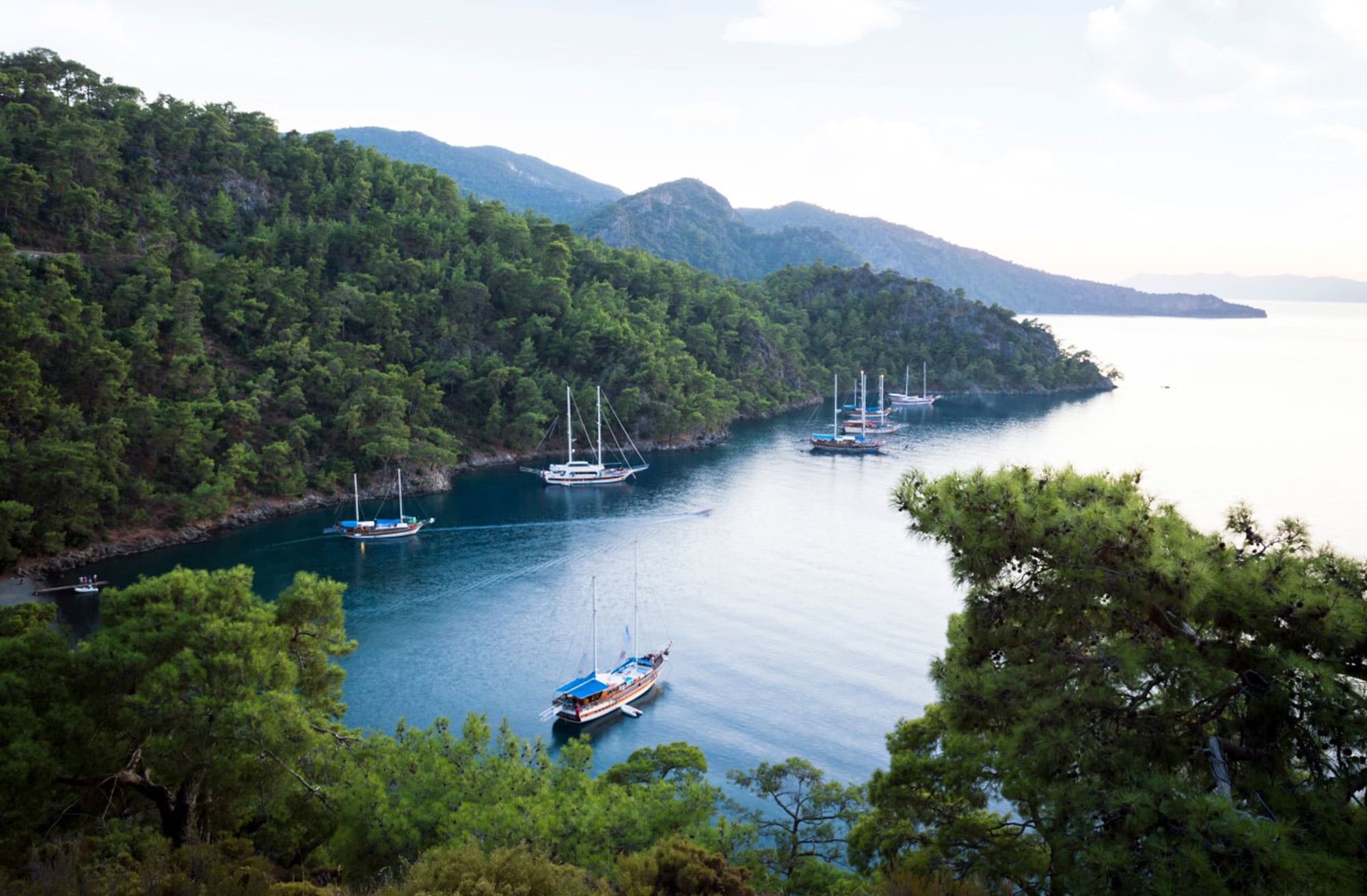Upon embarkation, enjoy your welcome cocktails while the crew sets the sails off to Ekincik. Disembark for a hike, and trek through a glorious landscape. Along the way, dip into therapeutic natural hot springs, explore the ruins of Caunus and swim in the fresh, clear waters of Lake Koycegiz. Return to the gulet in Semisce Cove for dinner on the sea.