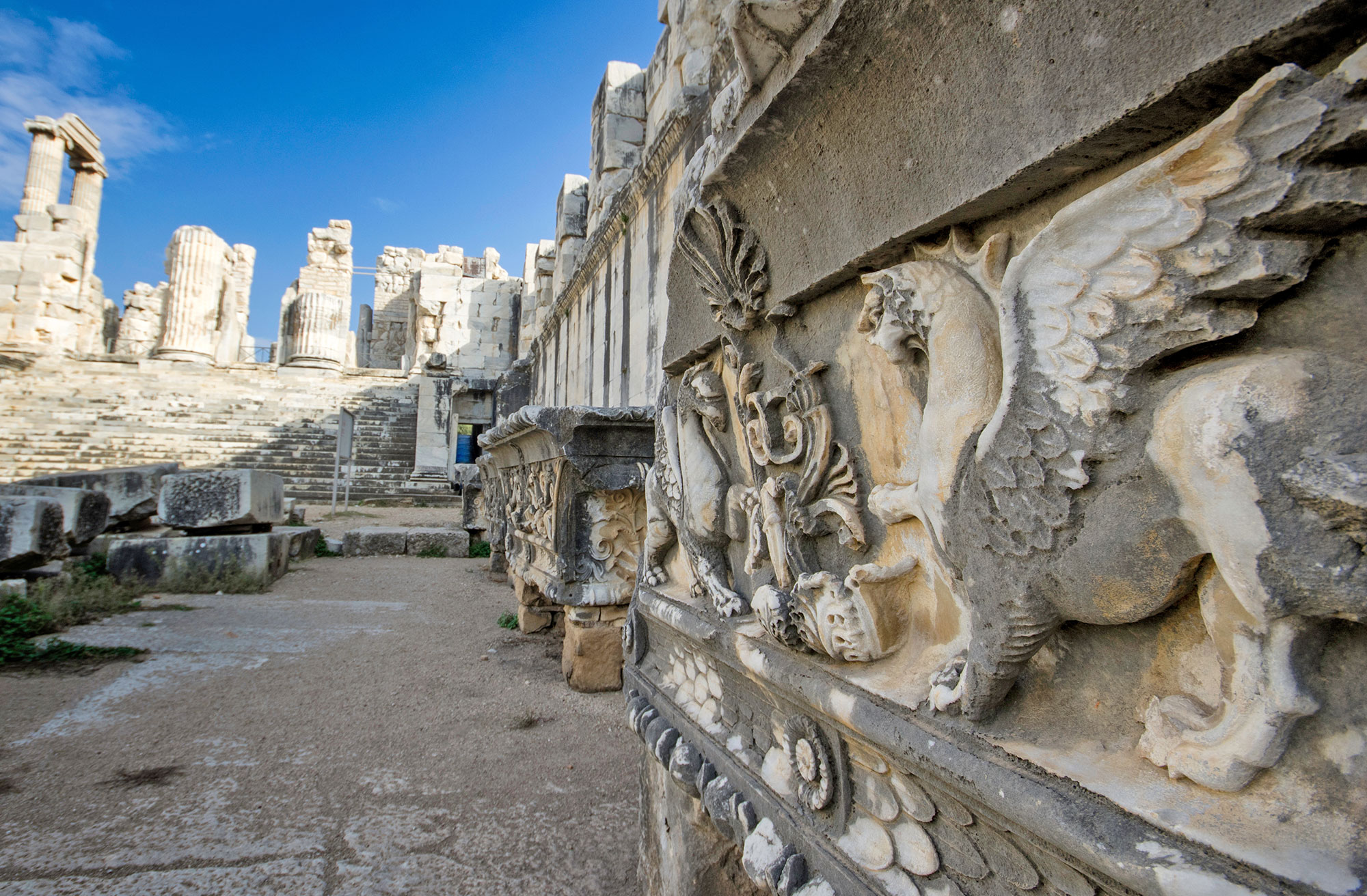 Early in the morning, proceed to Priene, or as historians like to call it, the Pompei of Anatolia. Highlights include the Ecclesiasterium, the Temple of Athena Polias, and the Agora. The next visit is to Miletus, where we will explore the Delphinion, Baths of Faustina, and the Council Chamber.